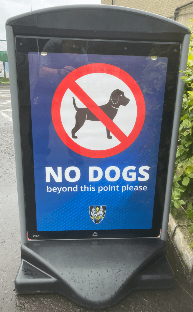 Thanks to one of our members, we now have a new sign to accompany those on the main gates. The exceptions will naturally be guide dogs and working dogs.